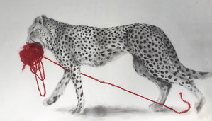 2024Een tekening van grafiet en soft pastel met echte wol.